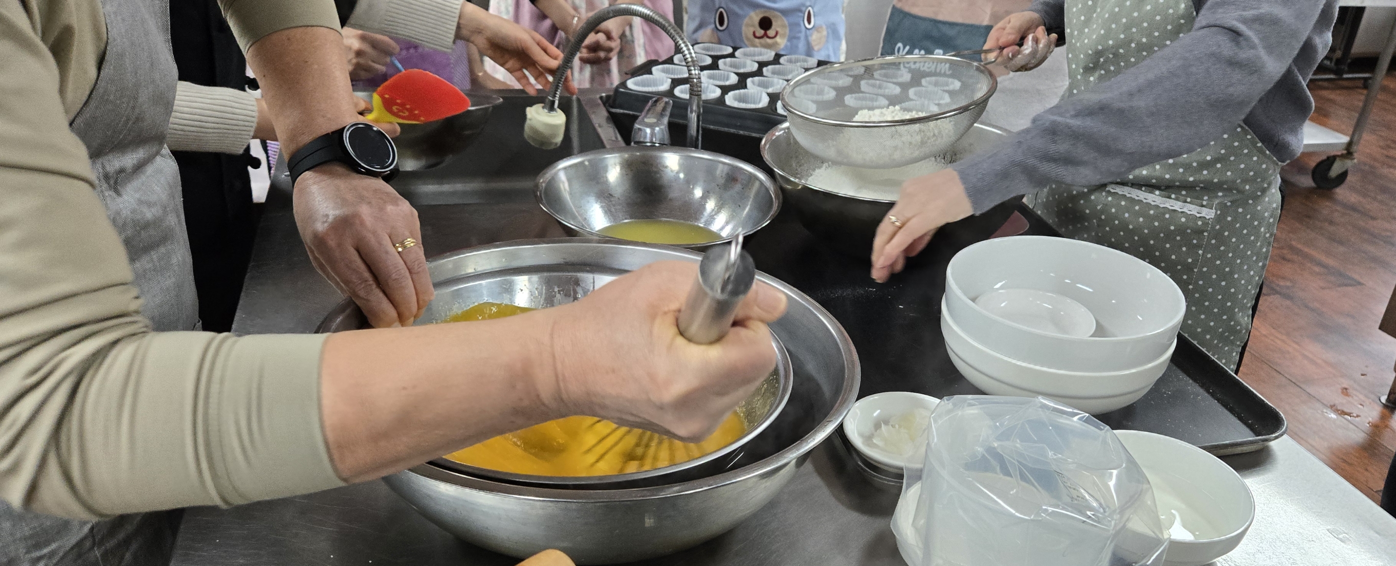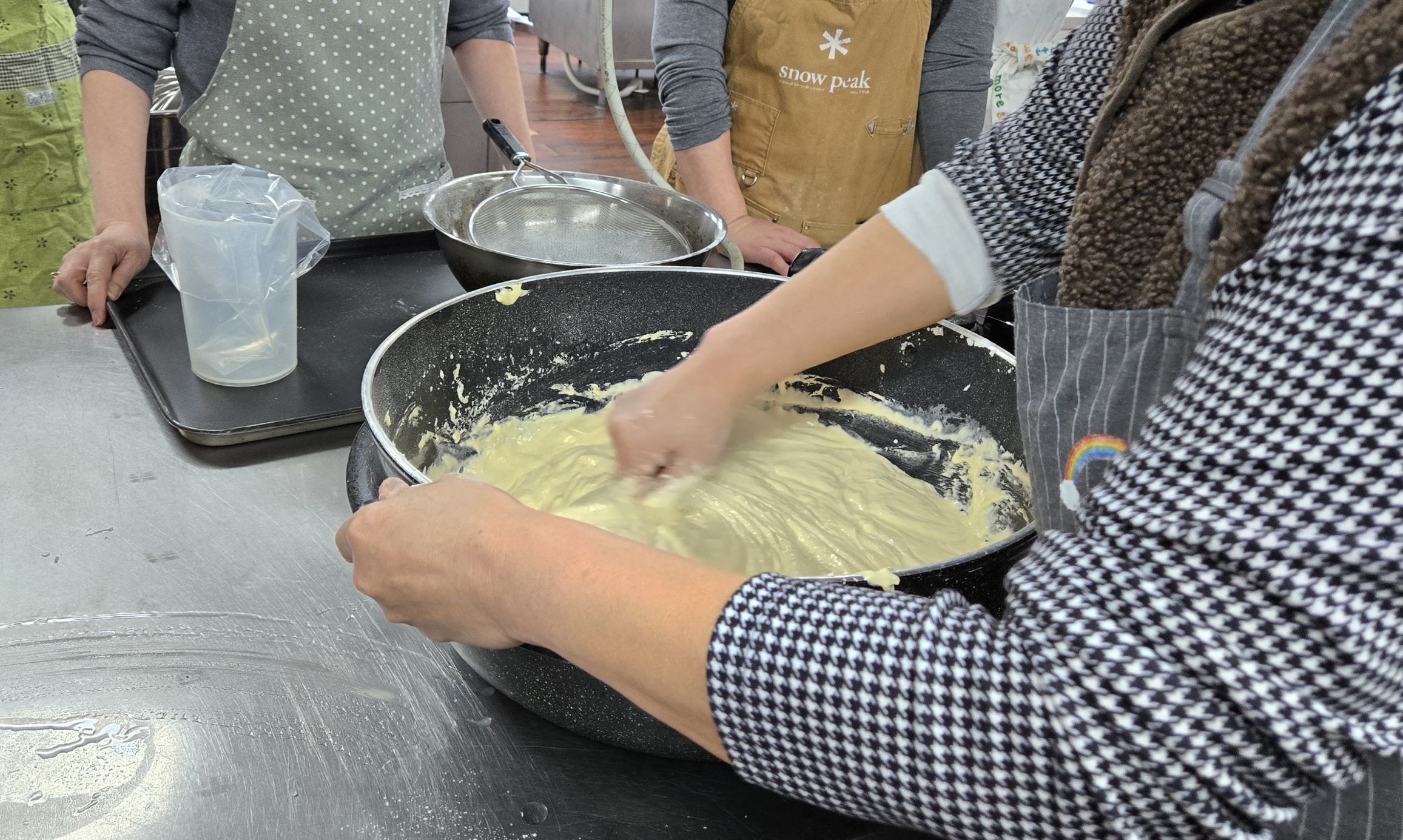 6. 완성된 크림에 밀가루를 넣고 뭉치지 않도록 밑에서부터 위쪽으로 잘 섞어준다.