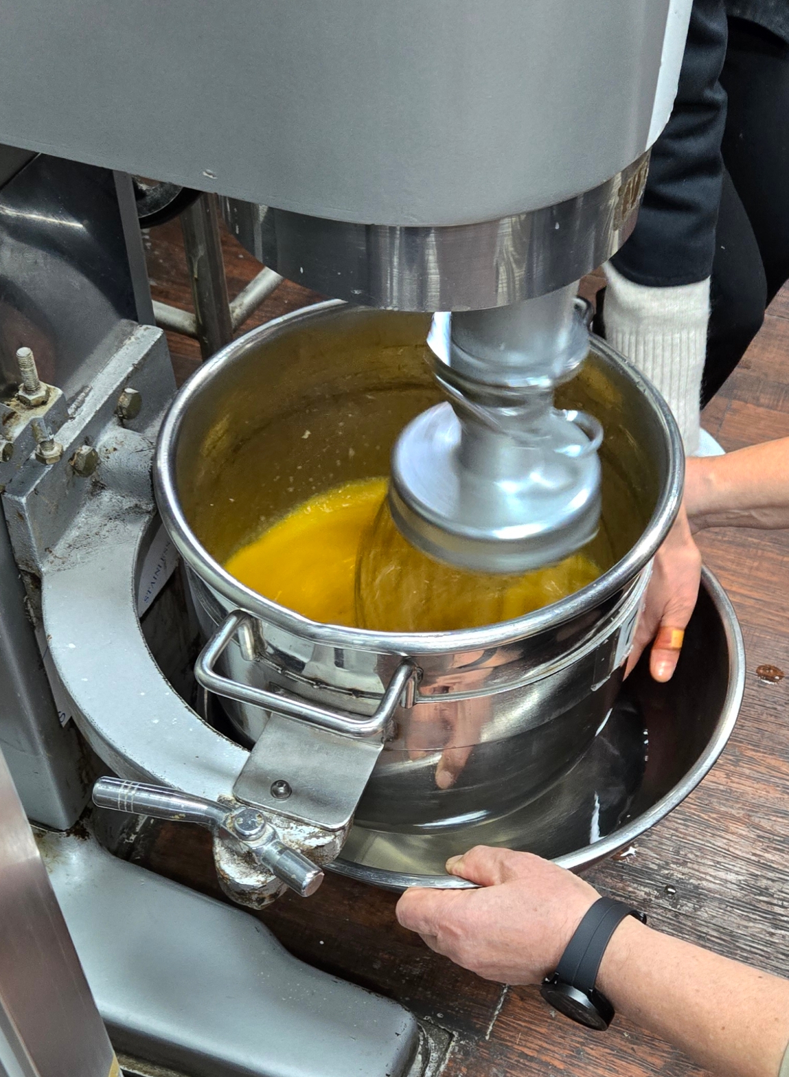 3. 거품기 기계를 이용하여 혼합해 준다. 처음엔 저속으로 이후 고속으로 속도를 조절하여 거품을 일으킨다.